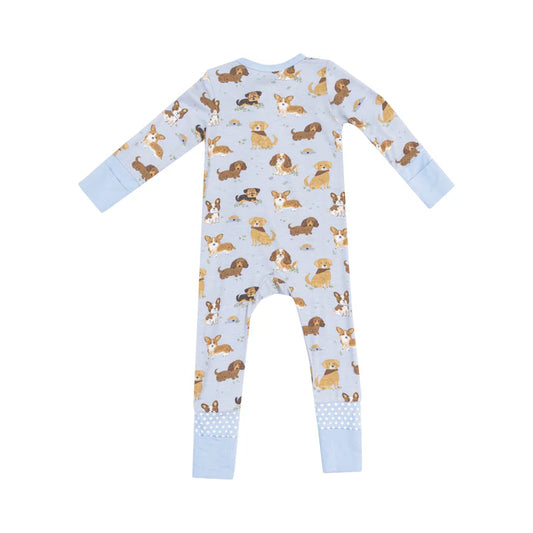 2 Way Zipper Romper- Best Friend Dogs Blue
