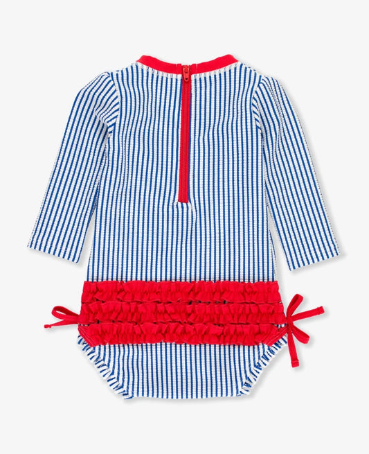Seersucker Long Sleeve One Piece Rash Guard - Blue Seersucker