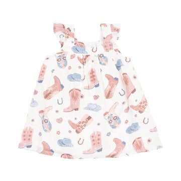 Sundress & Diaper Cover - Cowboy Boots Pink
