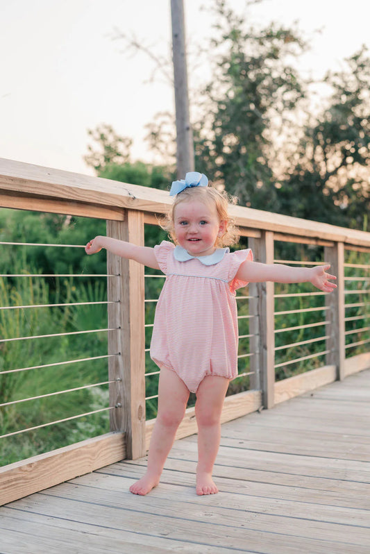 Genevieve Bubble- Coral Stripe/Light Blue