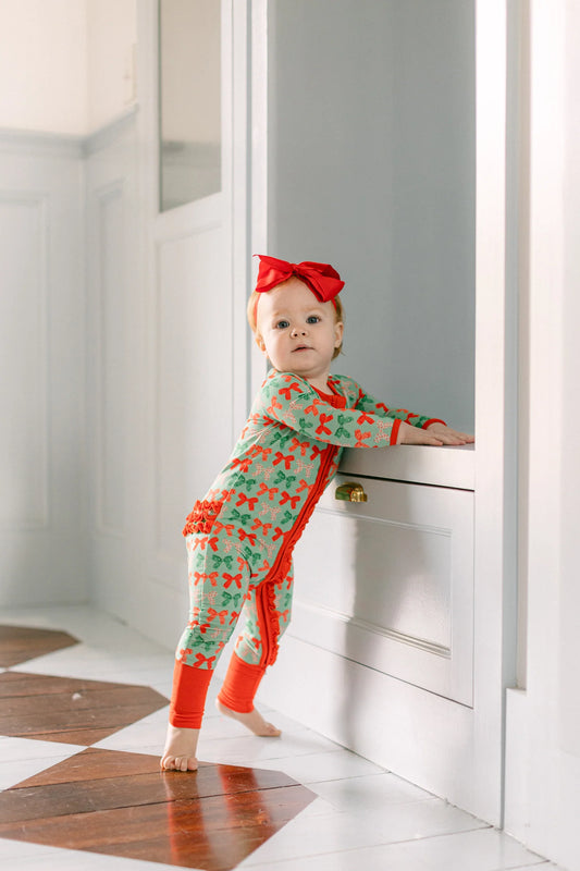 Mini Mallard Embroidered Ruffle Footie - Pink