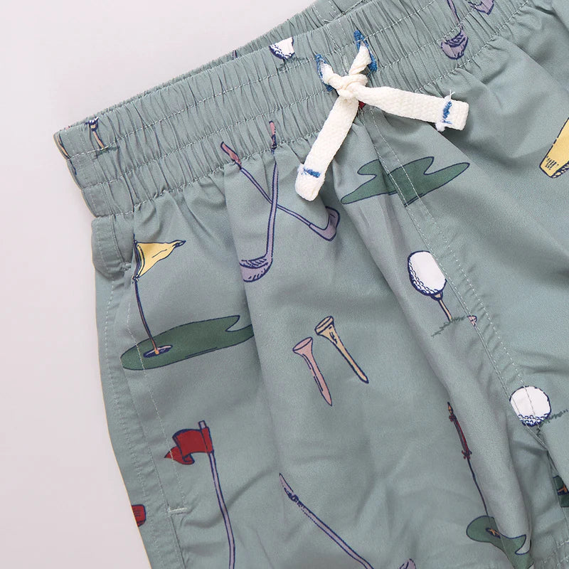 Our collection classic Baby Boys Swim Trunk hits all the right waterside style notes. Practical features include roomy side pockets and one velcro back pocket. An elasticized waistband adds comfort and easy movement; finished with a faux drawstring-tie closure.