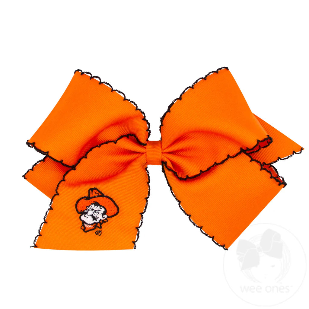 King Grosgrain Hair Bow with Moonstitch Edge and Embroidered Collegiate Logo