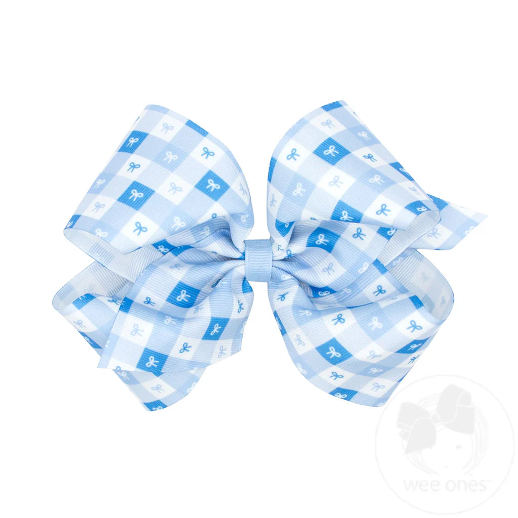 King Millenium Blue Gingham Bows Print Grosgrain Hair Bow