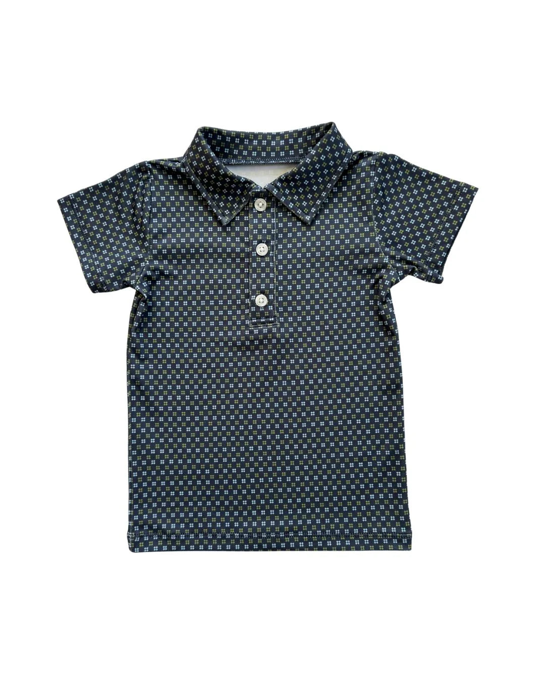 The Kyle Polo is always a crowd favorite! The timeless silhouette mixed with a subtle micro geometric print makes it the perfect polo for your favorite guy! This shirt moves with your little guy whether he's on the playground or out to dinner with the fam.
