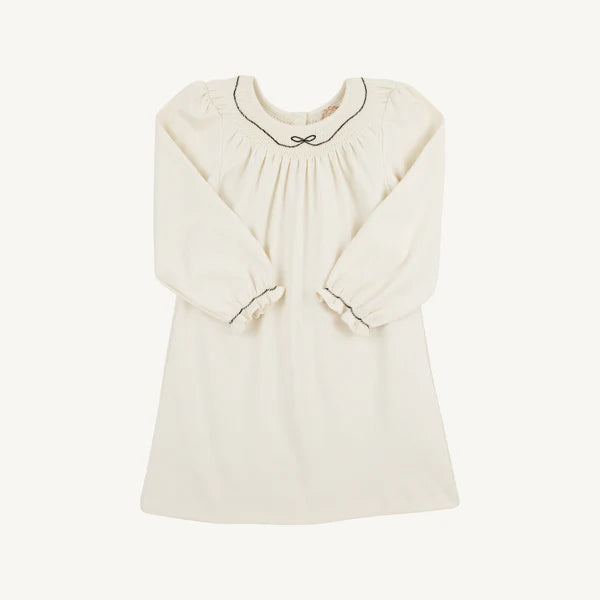 The Long Sleeve Sandy Smocked Dress is simply adorable! Featuring Palmetto Pearl and a smocked neckline with Newport Night Bow detailing, this sweet dress will be a must-have for your favorite girl.