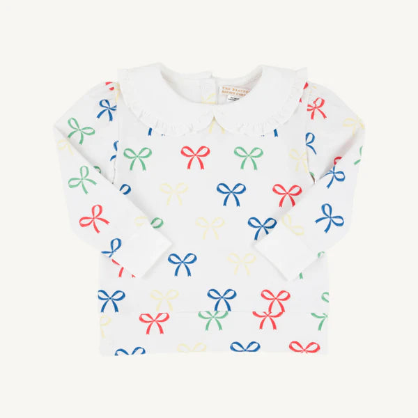 Our Maude's Ruffle Cassidy Comfy Crewneck is so cute we can hardly stand it! Featuring Ribbon Reminder with Worth Avenue White, she'll be sure to keep warm in the most adorable way possible!