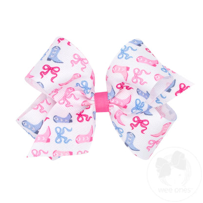 Medium Boots and Bows Print Grosgrain Hair Bow