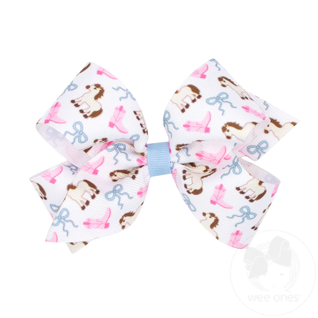 Medium Cowgirl Boots Bows and Pony Print Grosgrain Hair Bow
