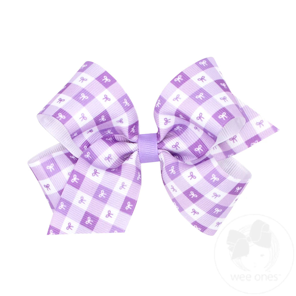 Medium Light Orchid Gingham Bows Print Grosgrain Hair Bow