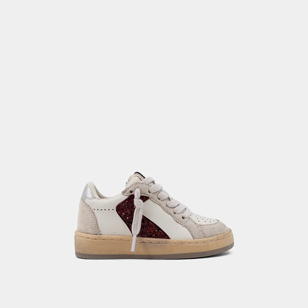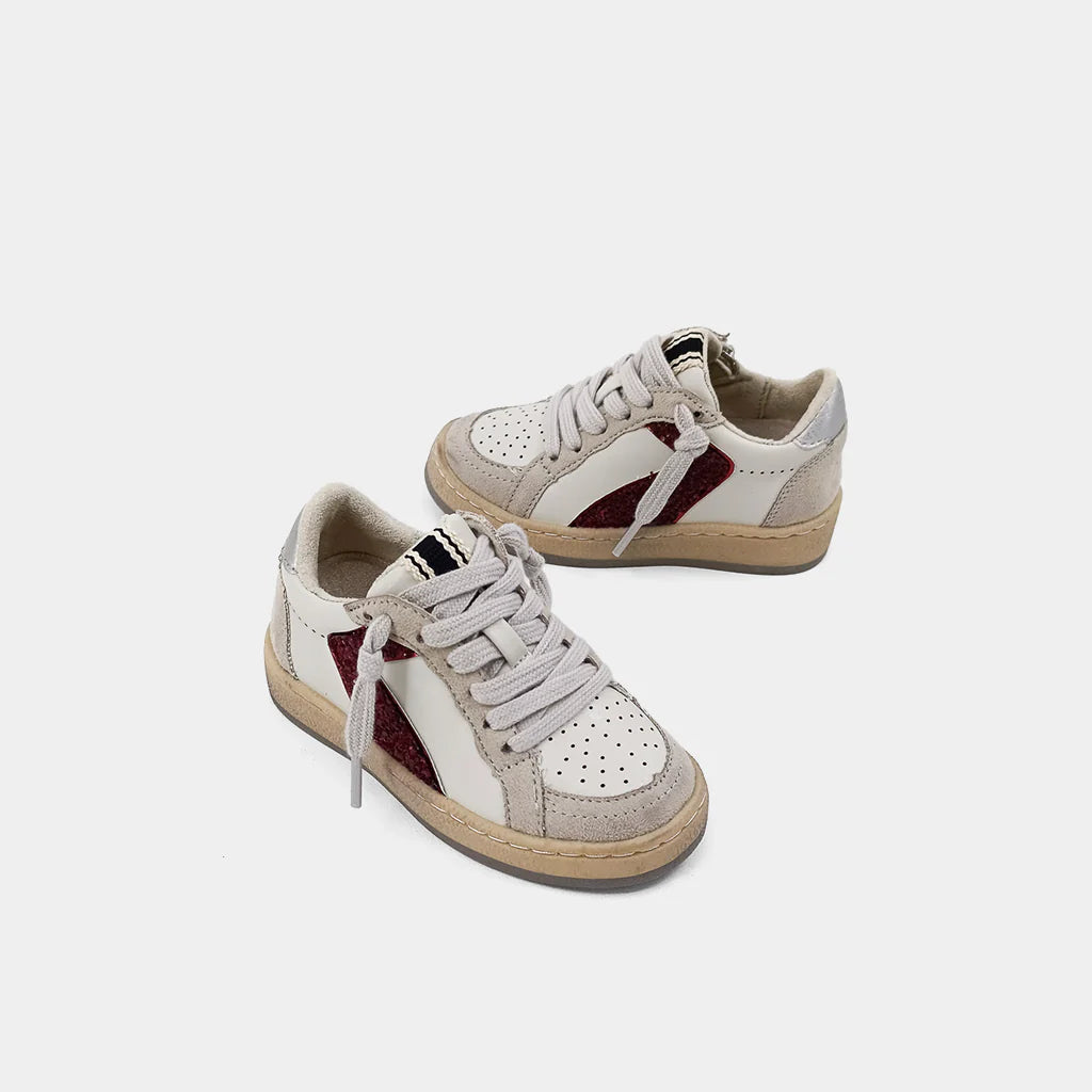 These shoes blend old-school athletic style with modern vibes, making them suitable for any occasion. They are crafted from high-quality faux leather that feels smooth, with glittery and suede details adding both style and comfort.