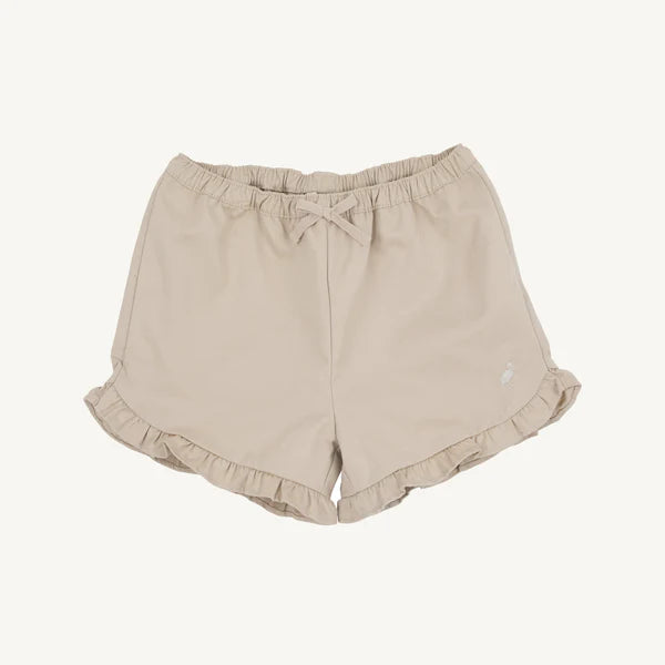 Our Shelby Anne Shorts in Keeneland Khaki with Keeneland Khaki Stork are sure to be your little girl's new favorite shorts. You'll fall in love with the ruffle details!